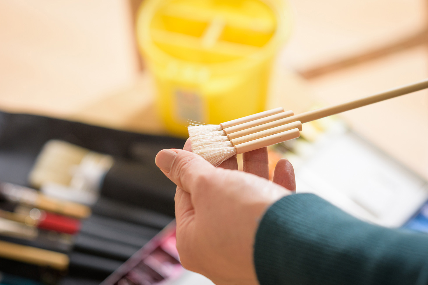 - 瞑想です。目の前にあるモチーフと対話するような気持ちで観察し、仕上がりのイメージを作ります。